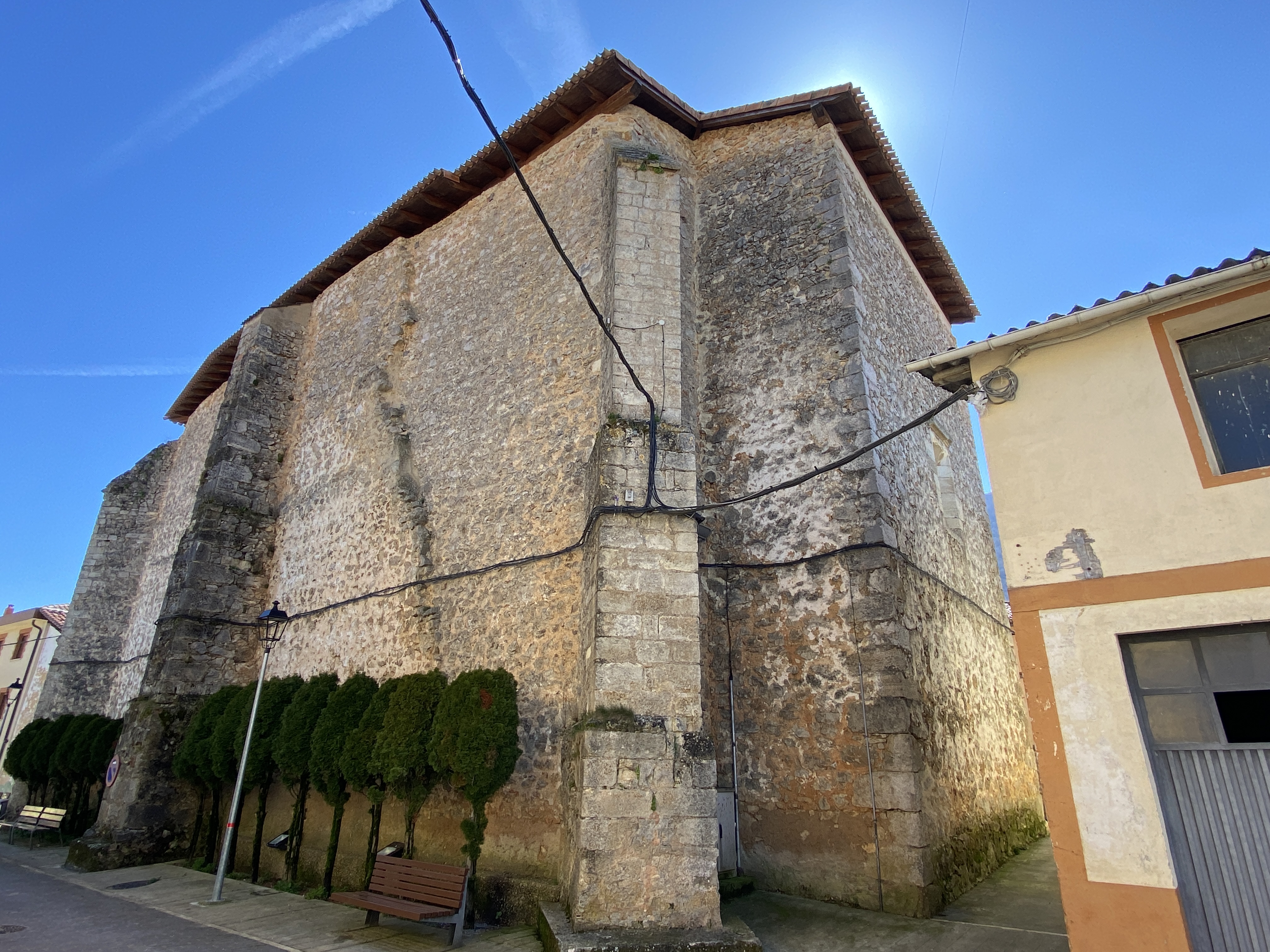 Gurutze Santuaren Gorespenaren izenpean dagoen parrokia-eliza. XIII. mendeko jatorrizko eraikuntza erromanikoa; ondoren, XVI. mendearen azken eta hurrengoaren hasiera artean, berreraiki egin zen, eta aurrekoaren oroigarri gisa, arku zorrotzeko portada geratu zen. Tenpluak oinplano angeluzuzena eta abside poligonala ditu, eta ganga izartuek estaltzen dute; erdiko aldarea rococo estiloko eredu ona da; XVIII. mendekoa da bigarren zatian; alboetan, gurutziltzatuari eskainitako aldareak daude: Arrosarioko Ama Birjina, Sortzez Garbia eta San Roke. Lehen biak garai barroko aurreratukoak dira, eta horien artean nabarmentzen da Santo Kristorena, hondo margotu baten gainean egindako tailu bikainarekin.
