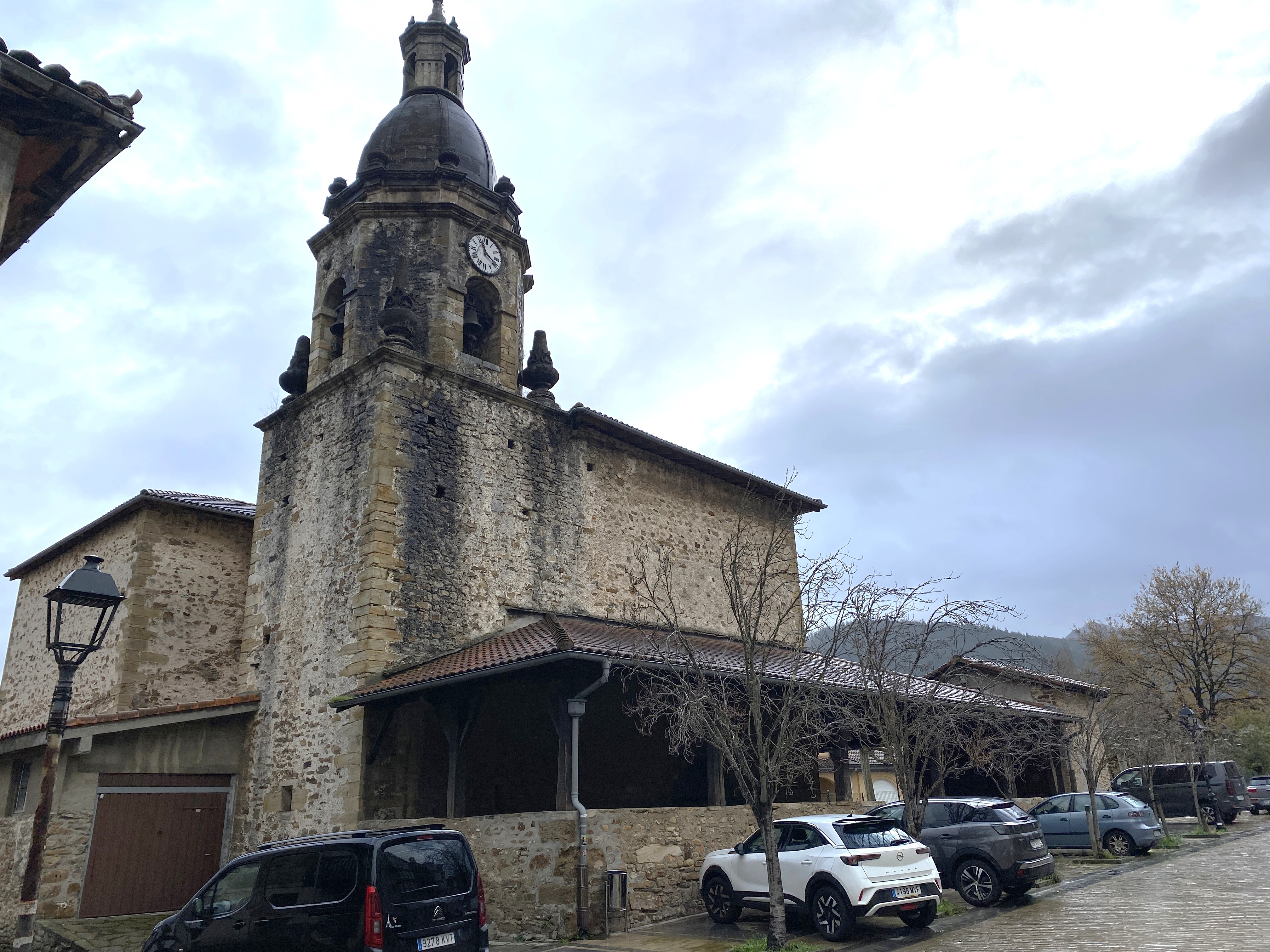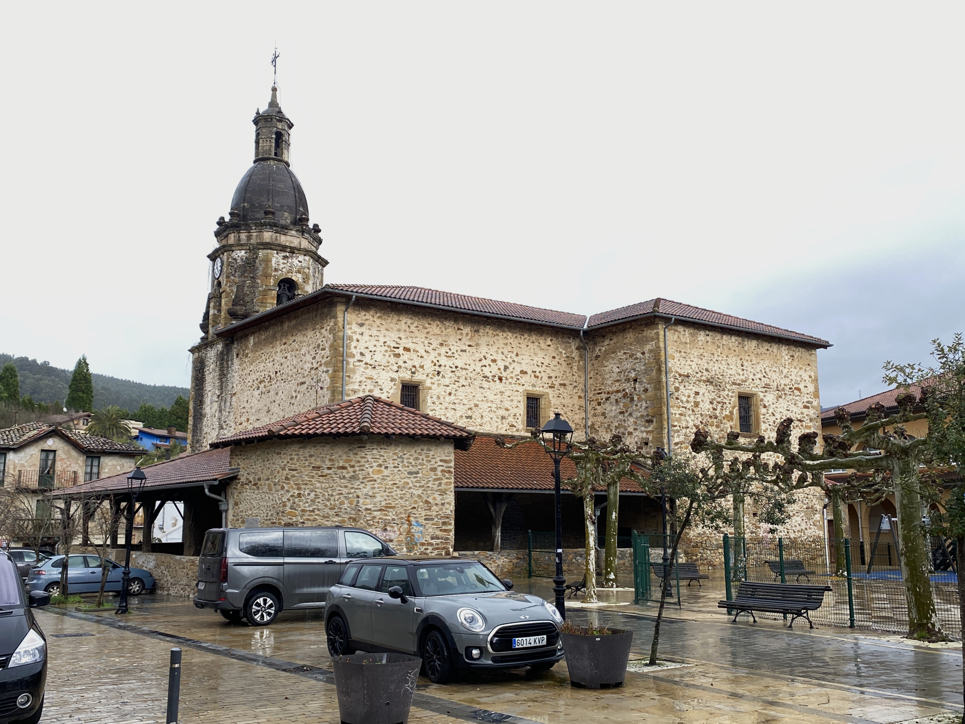 Metro gutxira zegoen beste tenplu xume baten ordezkoa da. Tenplu hori ere gotikoa zen, eta bere aurri-egoeragatik eraitsi egin zuten. Antzinako elizatik 54 hilobi baino ez dira geratzen. Tenplua apaindura gutxiko Euskal Barroko estilokoa da. Nabearen oinplanoa gurutze latindar formakoa da eta hiru tarte desberdinetan zatitzen da, burualdea sakristia batek inguratzen duelarik. Estalkia ilargixka-gangaduna eta absideduna da, neurri desberdinetakoak izanik. Seriotasun hori elizari atxikita eta lau gorputzetan zatitutako dagoen kanpandorreak apurtzen du: Lehenengoa karratua da, harlangaitzezkoa eta bao txiki bi dauzka; bigarrena kanpandorre oktogonala da, erdi-puntuko arkuekin erremataturiko 4 baorekin; hirugarrena harlanduzko kupula da, alboetan tornuan landutako zortzi pinakulu dituena; azkenik, gurutze latindar bat dago. Elizpean zurezko estalkia nabarmentzen da; berau kanpandorrearekin, San Antonio Abadea eta San Antonio Paduakoaren baselizarekin, eta ate nagusiarekin lotuta dago. Azken honek moldura ugaridun erdipuntuko arku bat du, inposta lerro baten atsedena hartzen dutenak kapitel gisa, eta zenbait “atezango”k eutsita. Bere 9 dobeletatik erdikoa nabarmentzen da, duen mentsula formagatik. Erakineko baoek burdinsare arruntak dituzte. Barruan koruari eusten dion arku karpanela nabarmentzen da. Dobelez apaindutako arku honi hormari atxikitako pilastra baxu bik eusten diote. Aldare nagusiaren buru Kristo bat dago eta ezkerreko aldarean Ama Birjina Errosariokoaren erretaula zenbait tailarekin ikus dezakegu.