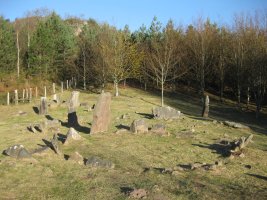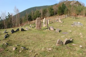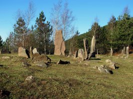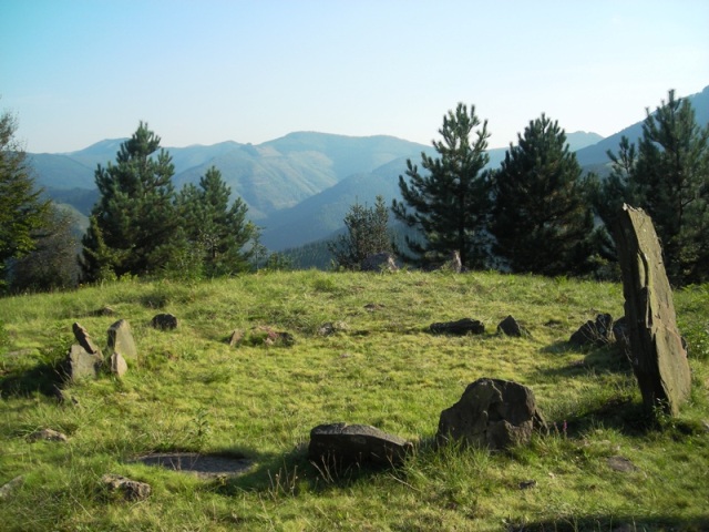 8.- Harri-meta, zutik dauden 5 lekukoz inguraturik bere Iparraldean. Bere erdian 1,18 m.tako luzerako harlosa bat dago etzanda.