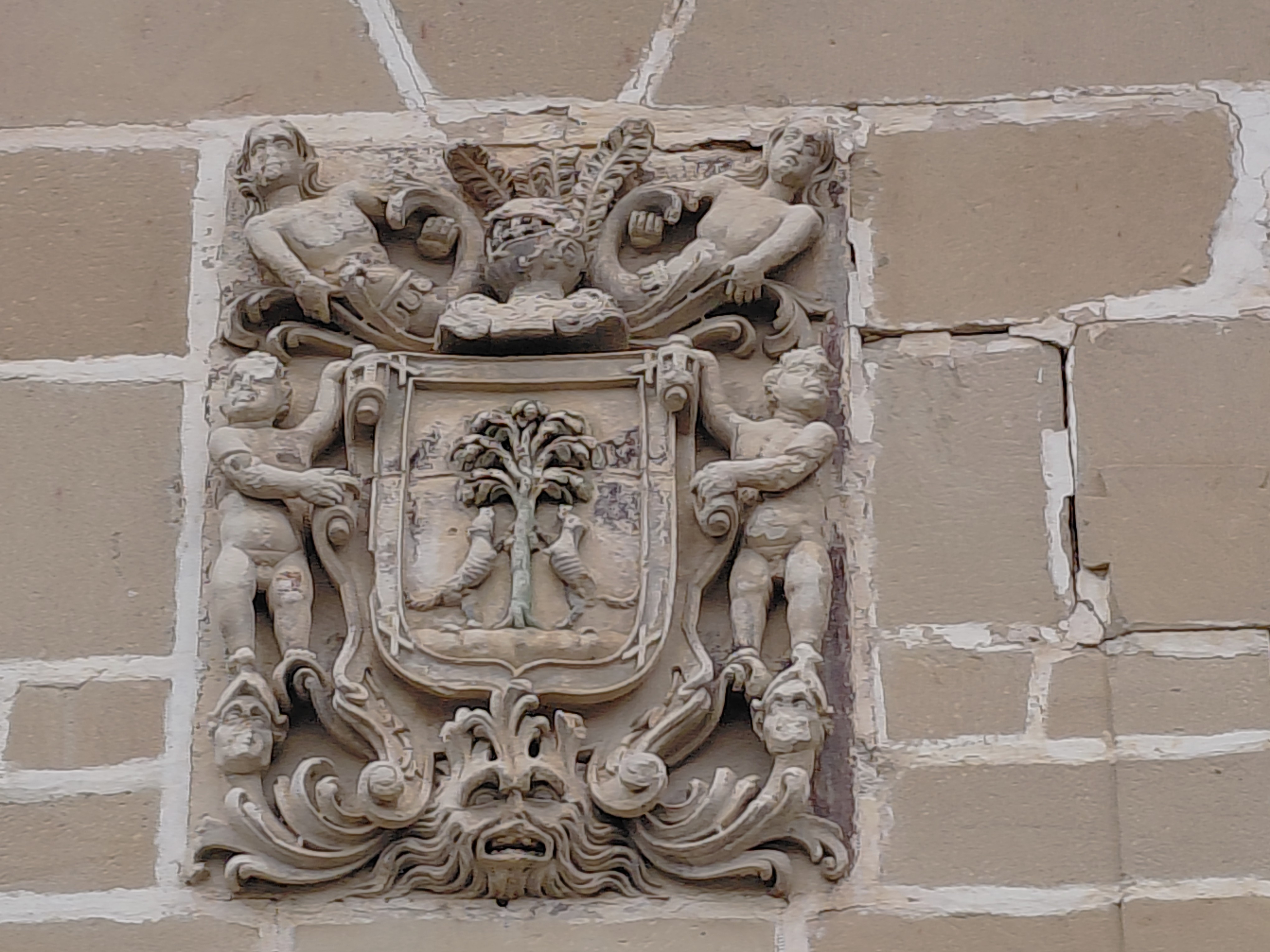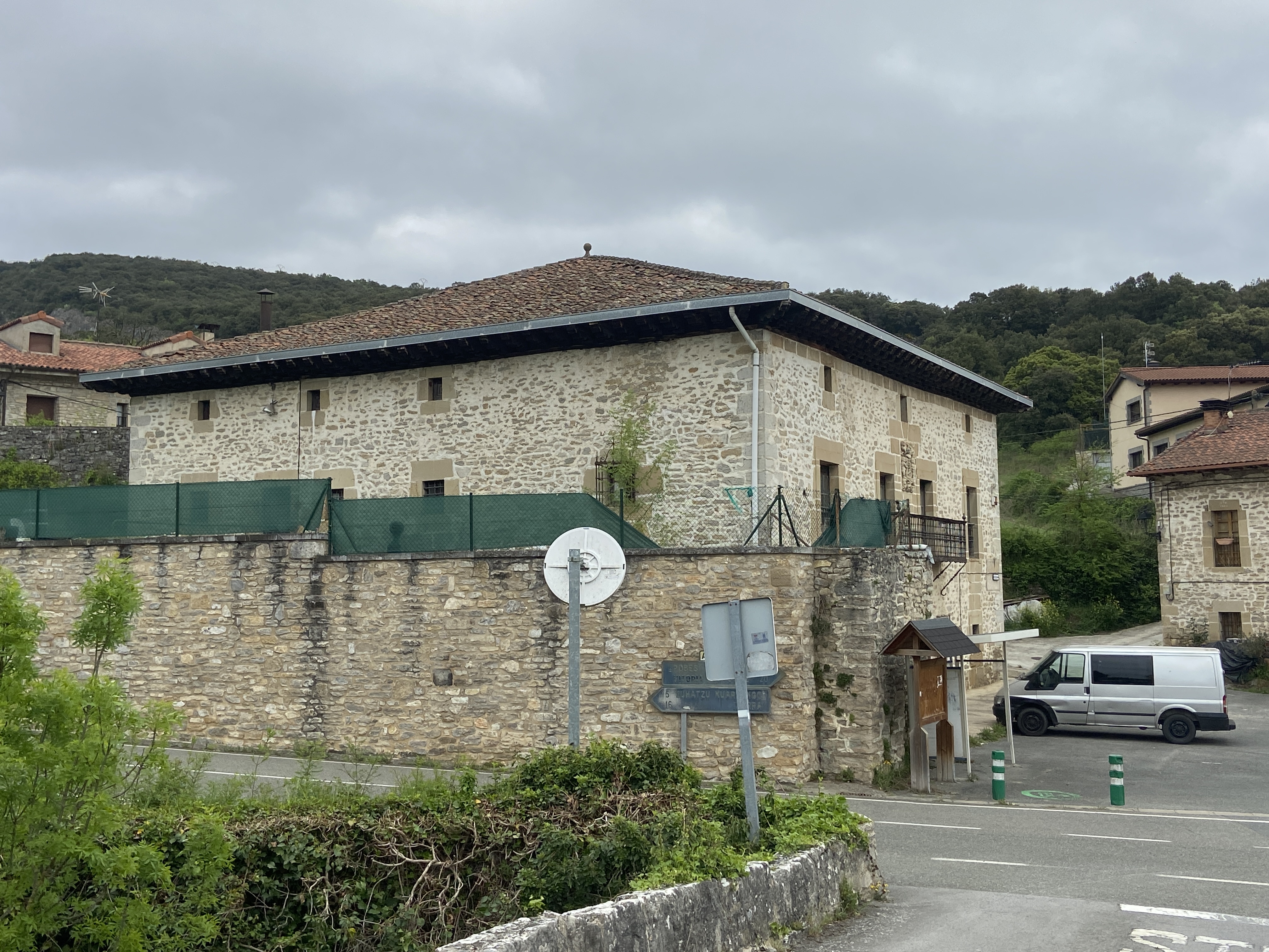 Kanpoaldean, eraikinaren lehen solairutik sar daitekeen lorategi-sagasti bat dago, XIX. mendean berritua. Zementuzko lauza apaingarri eta uhindunekin banatuta dago, Versailles estiloko hiru mailatan antolatuta, eta eraikinaren perimetroa osatzen duten horma lodiek inguratuta. Hegoaldeko fatxadan, bi leiho balkoidunen artean eta goialdean, familiaren armarria dago, oraindik bere jatorrizko polikromiaren arrastoak dituena.