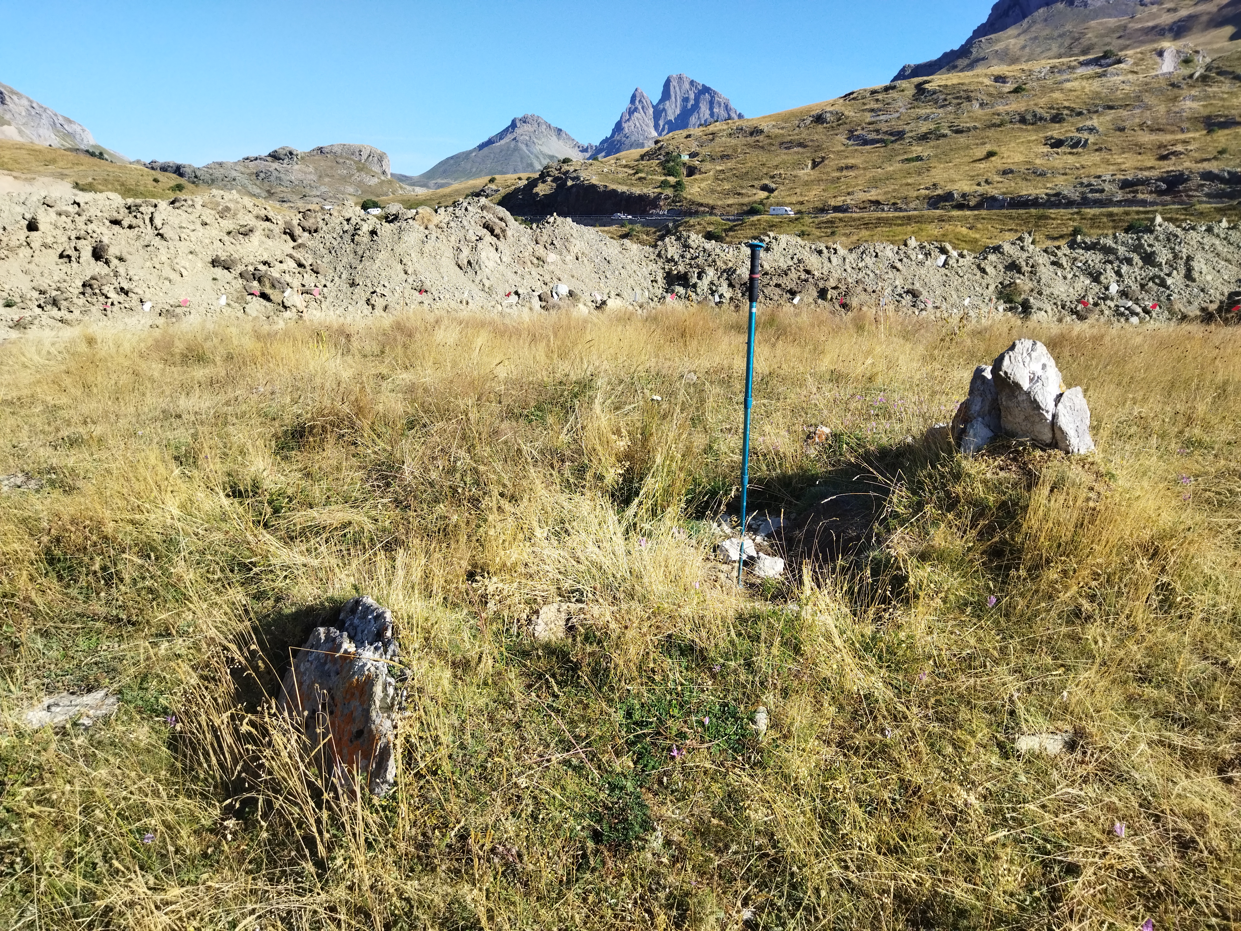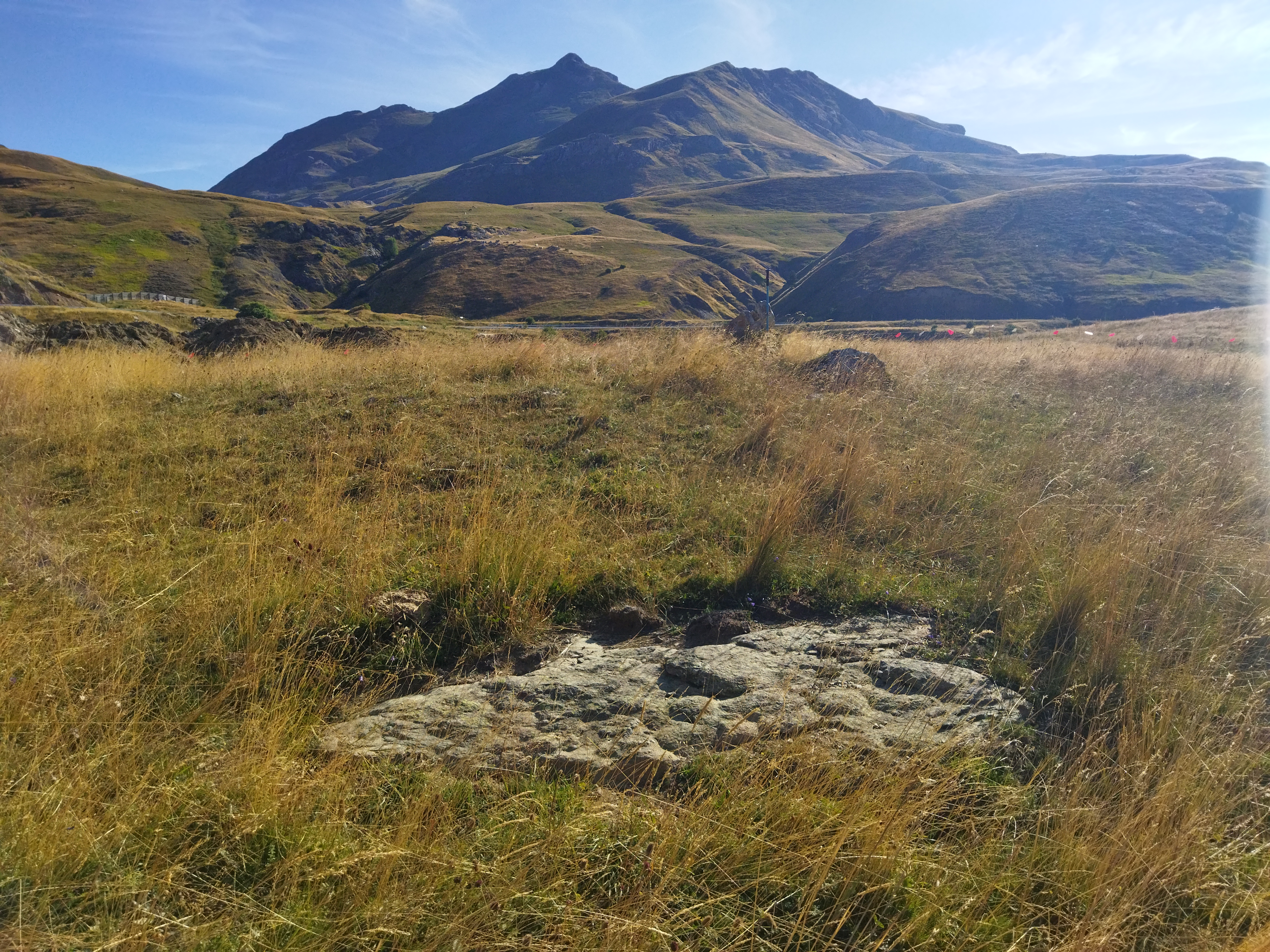 Erdialdean bi harlauza ageri dira eta balizko estalkia tumuluaren gainean datza.