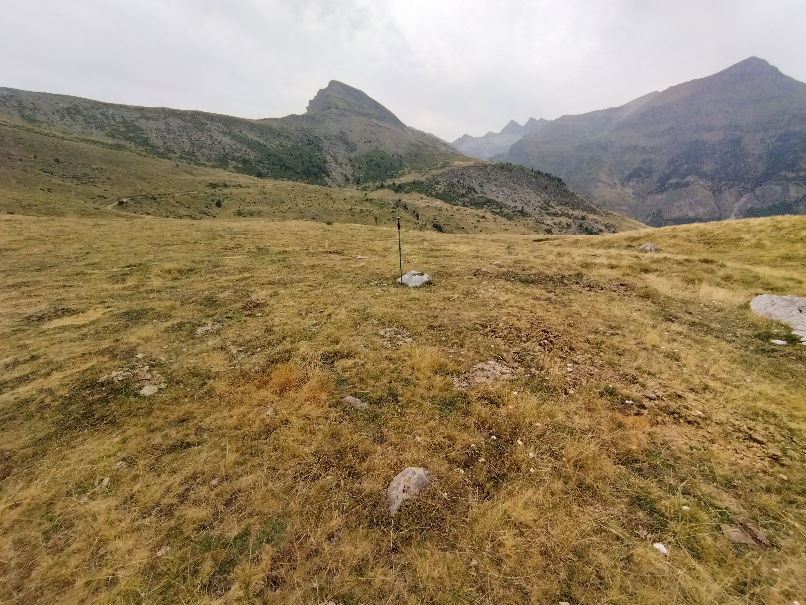 Erdialdean harri bat ageri da eta tumuluaren inguruan peristalitoa.