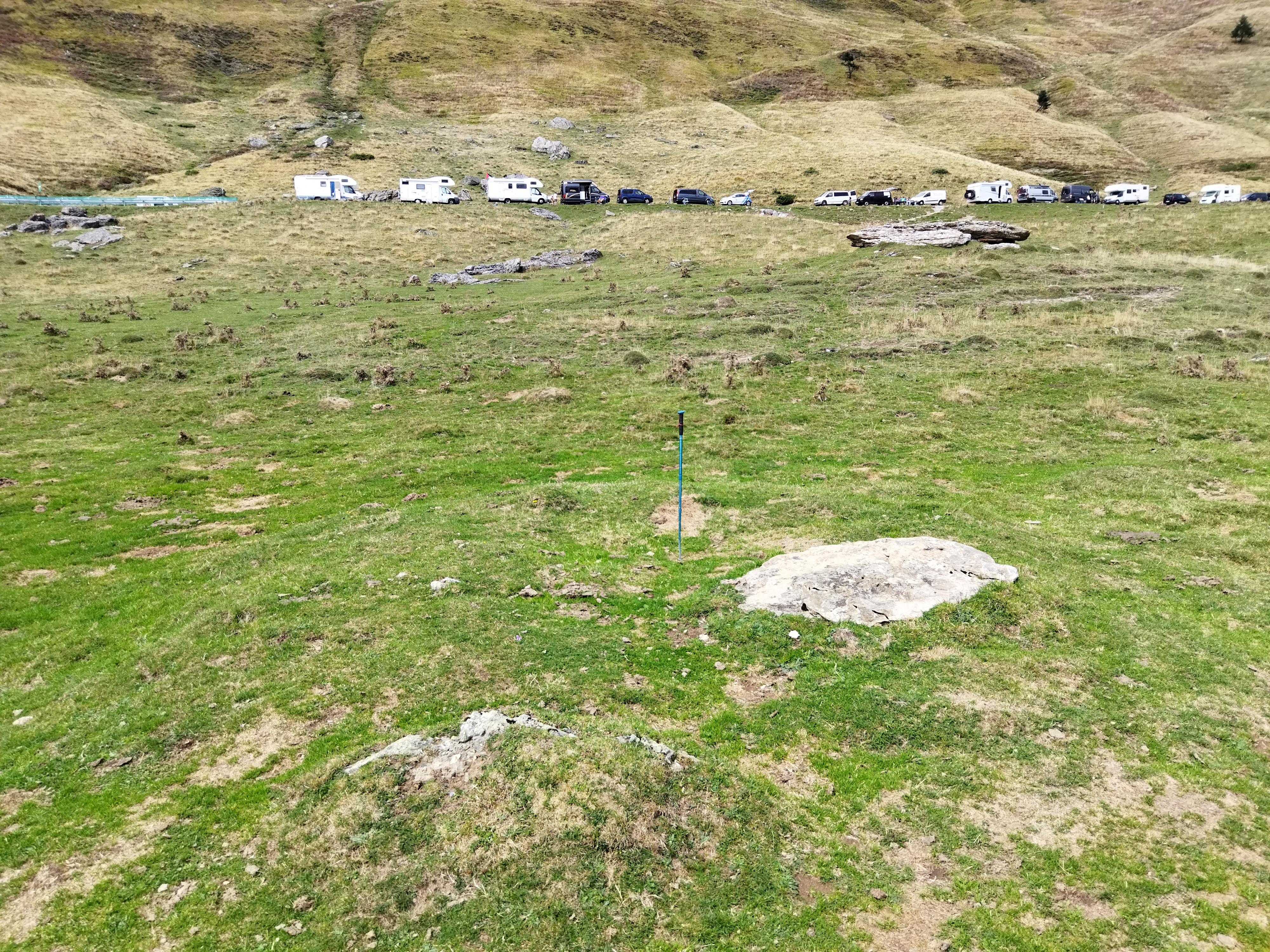 Tumuluaren gainean 1,65 m. x 1,15 m. x 0,15 m.tako harlauza bat etzanda.