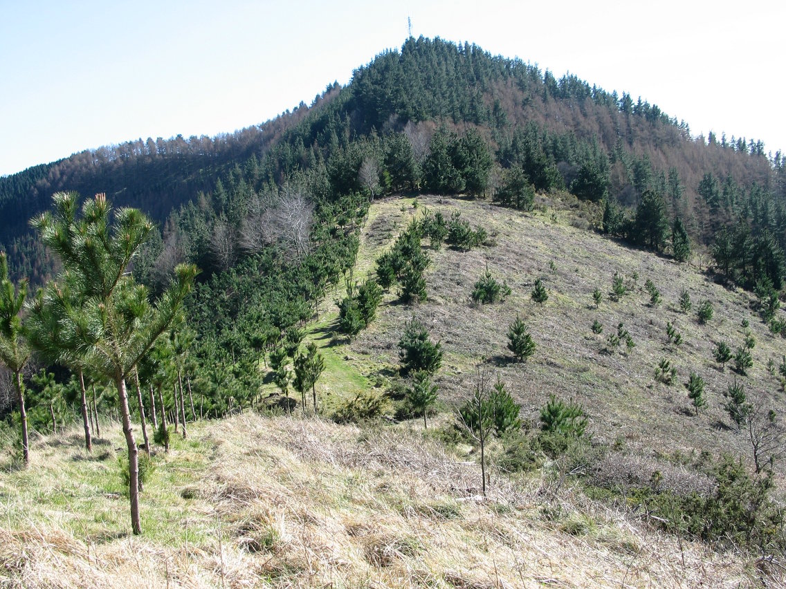 Inguruko gainontzeko mendiak bezala basogintzaren mendean daude bere isurialde gehienak eta hori nahikoa ez, eta antena instalazioa ere badu tontorrean. Han, elorri artean erdi ezkutaturik dagoen buzoi parea eta pinuz inguratutako ikusmira laburra. Eibar aldeko bizkarrean gora doa igoera zuzenena, gasbideari jarraituz tarte batean, baina antenara doan pista baliatzea erosoagoa gertatzen da, Karobietako mendatetik abiatuta, tartean Azkonabieta ere bisitatuz. Zerrendatik kentzeko modukoa.