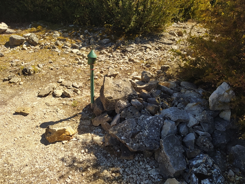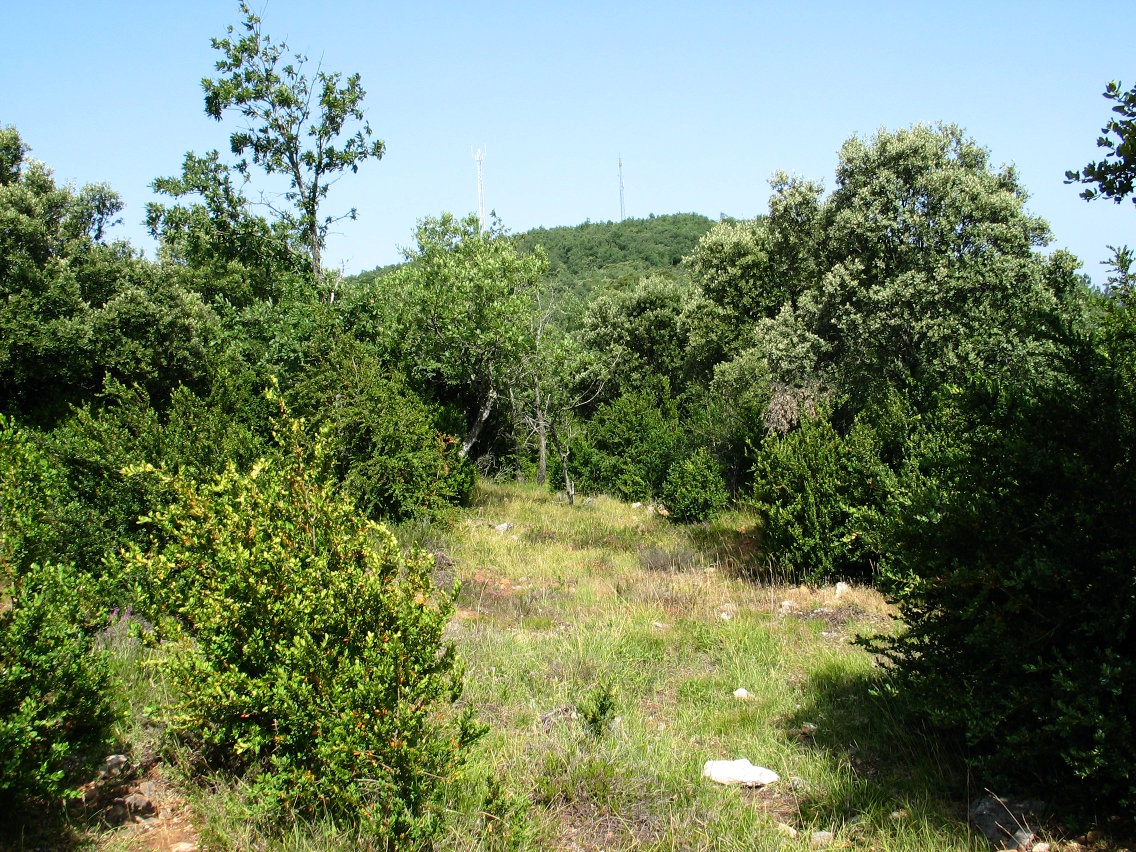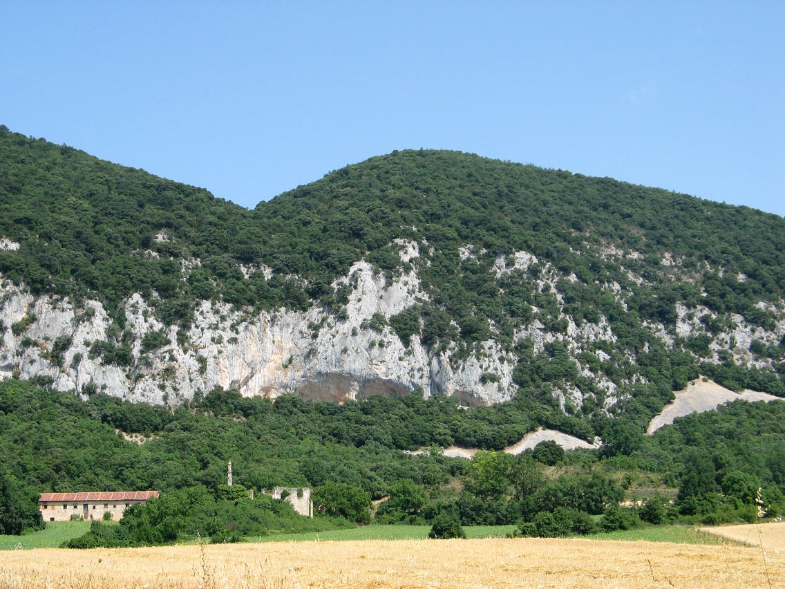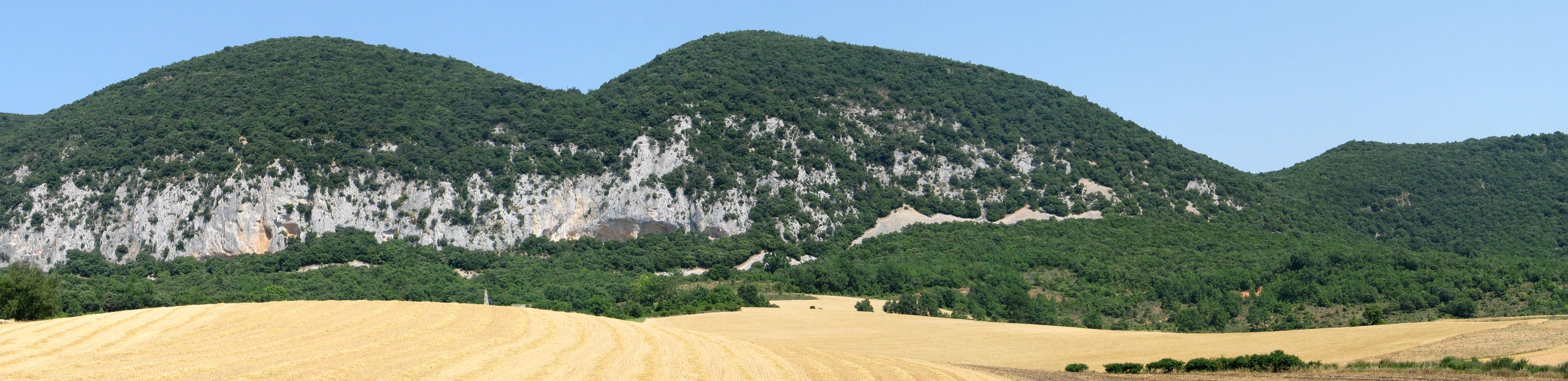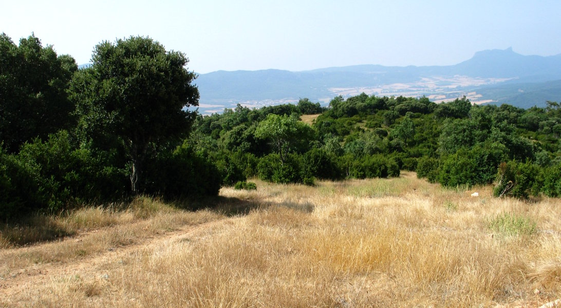 Harrotu egiten da Hornillo Kanpezuri begira eta artadiak estali ezin izan dituen karaitzezko horma biluziak erakusten ditu Hegoaldera. Haien babesera etorrita zegoen Pierolako konbentua, baina gaur egun hutsik dago eta hondakin eta sasi artean zutitutako eliz ataria eta horma batzuk besterik ez dira gelditzen zutik. Haren aldamenetik abiatzen da ohiko igoerabidea, artadi trinkoan barrena gora eginez, buzoia eta bi antena handi jasotzen dituen tontorrera heldu arte. Goi aldean artadia bakandu eta larre eremuan sakabanatzen da, inguruko mendiak ikusteko abagunea eskainiz.