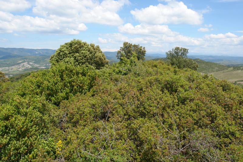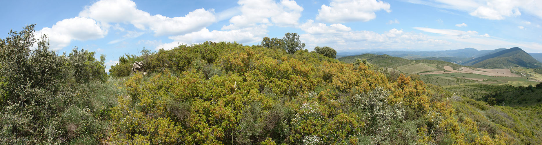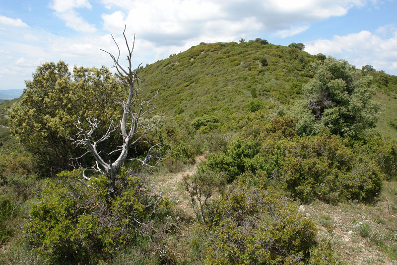 Baina tontorraren inguruan, esan bezala, mendizaleen urratua arina da eta sastraka nagusitzen ari da. Arrastorik nabarmenena hegoaldeko bizkarretik gora dator, ezpel eta abaritz artean. Tontorrean harri pila bat besterik ez dago, abaritzak utzitako hutsarte batean.