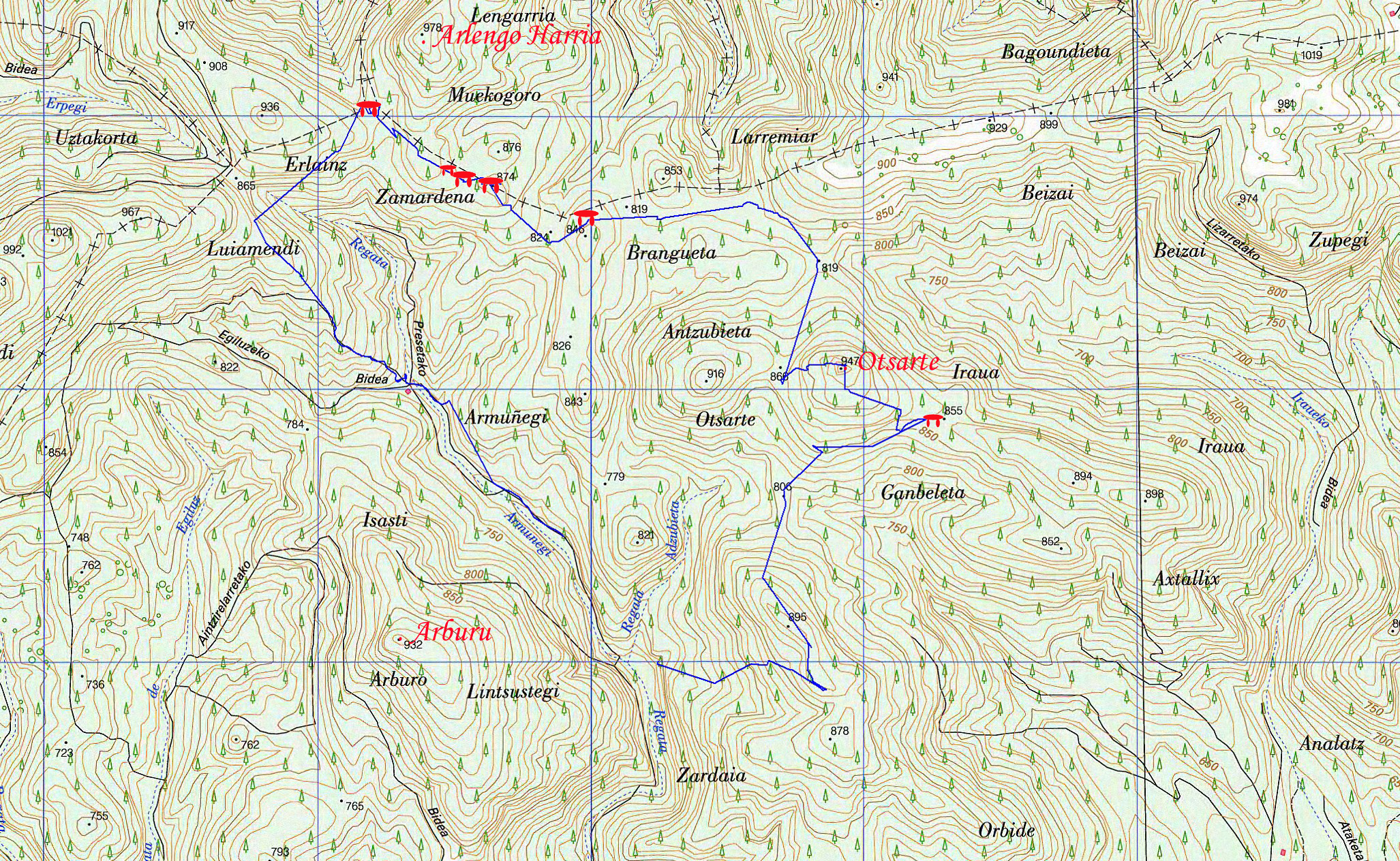 Otsarteko Gaina eta Zamategi mendiak igotzeko ibilbidea, Eltzaburuko pistatik abiaturik. Bidean hainbat monumentu megalitiko ikusiko ditugu.