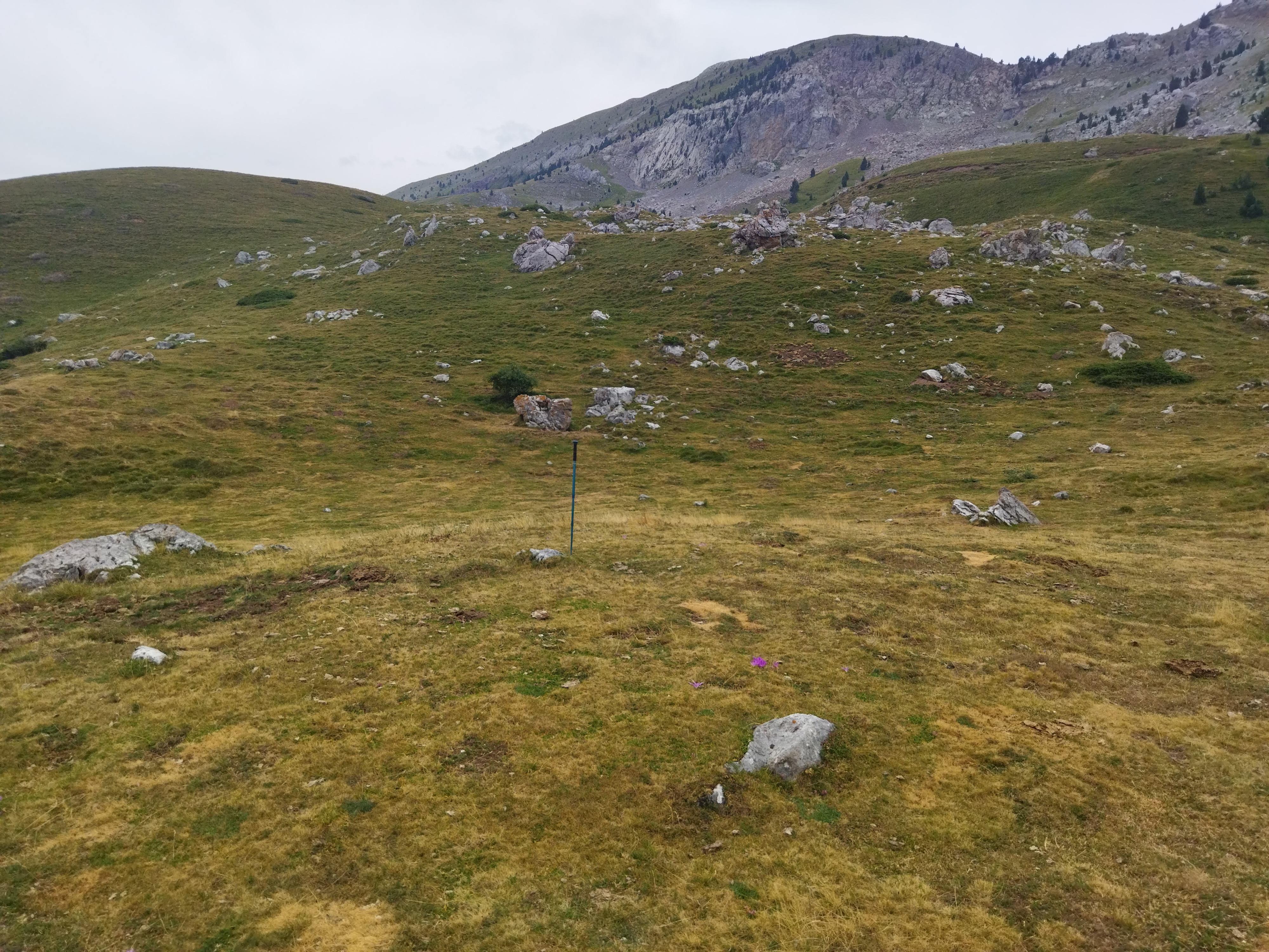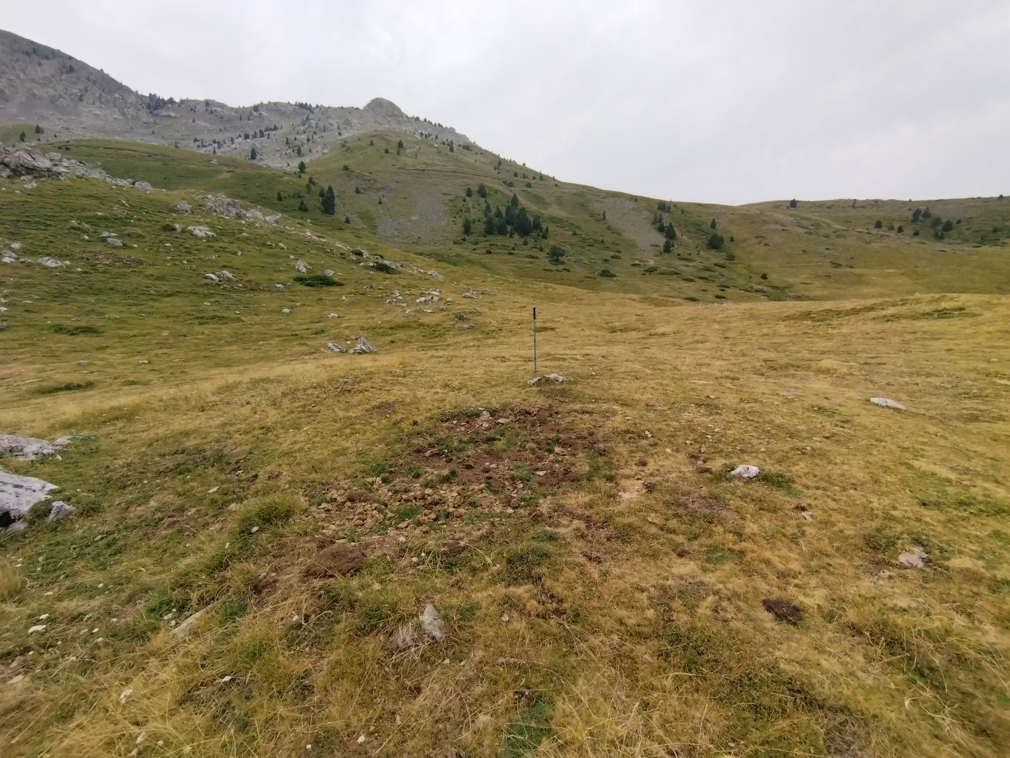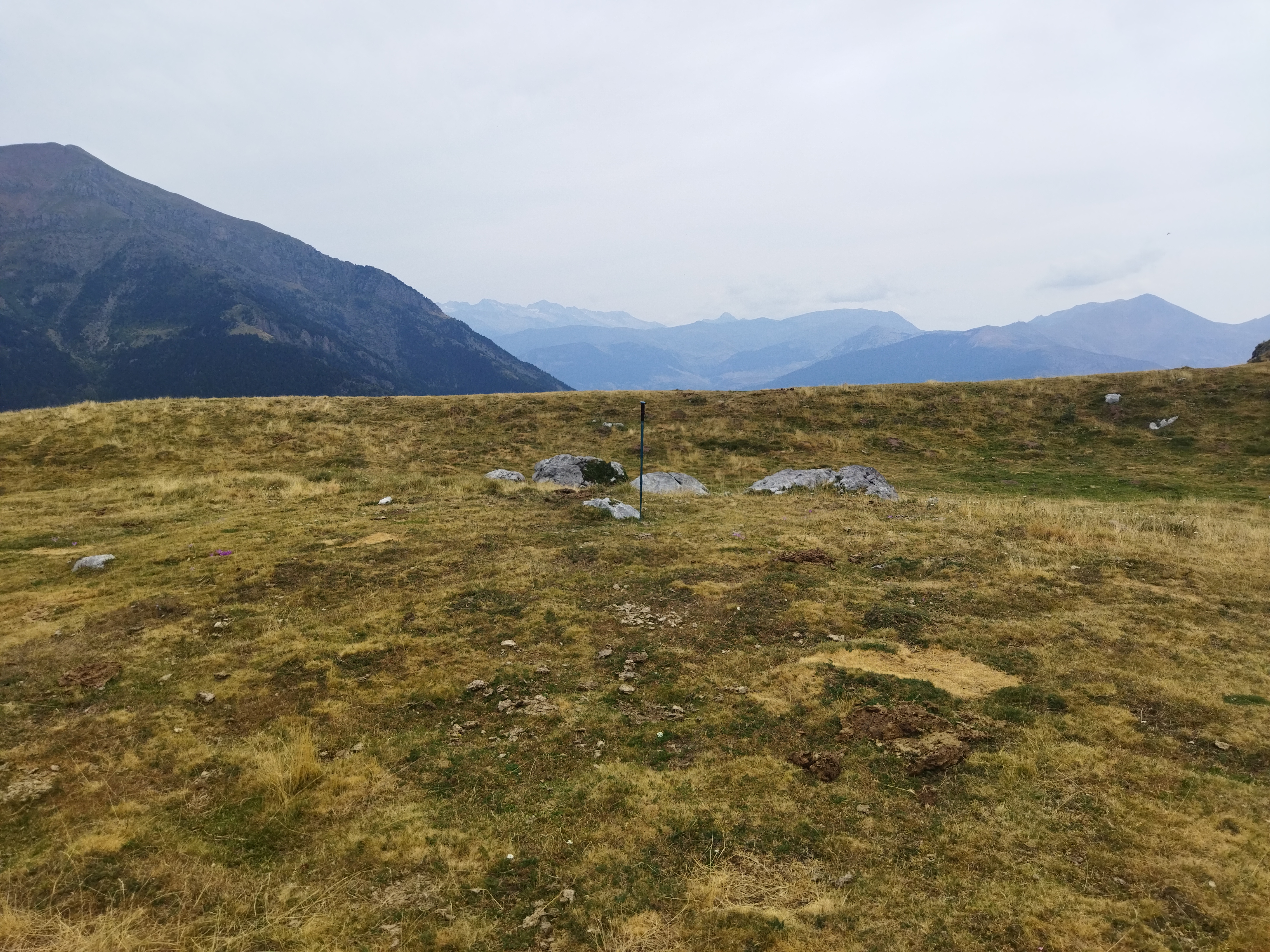 Erdialdean harri bat ageri da eta tumuluaren inguruan peristalitoa.