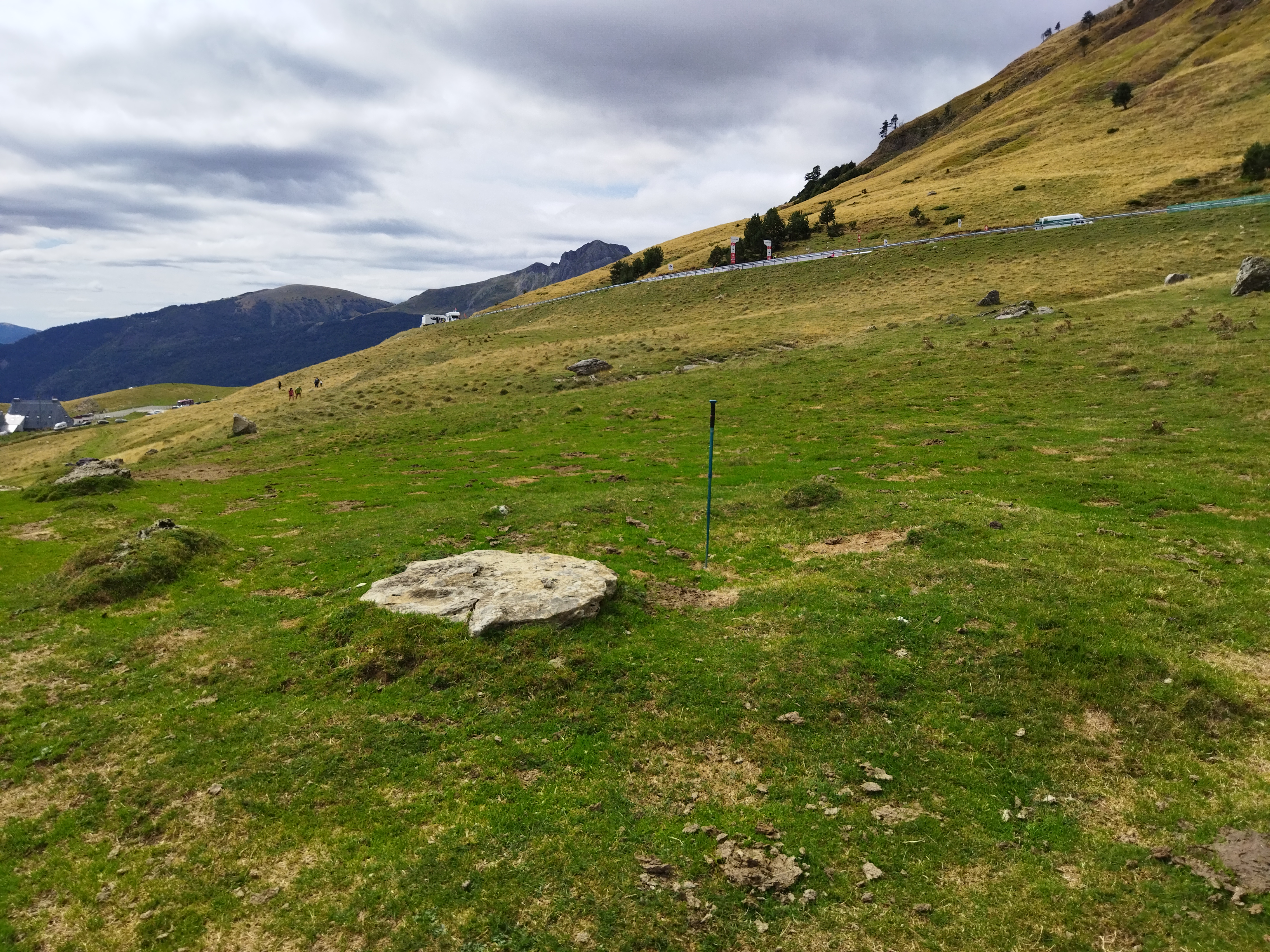 Tumuluaren gainean 1,65 m. x 1,15 m. x 0,15 m.tako harlauza bat etzanda.